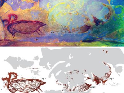 这幅洞穴壁画中大得惊人的猪可能反映出古代艺术家的首要狩猎目标。 MAXIME AUBERT这...