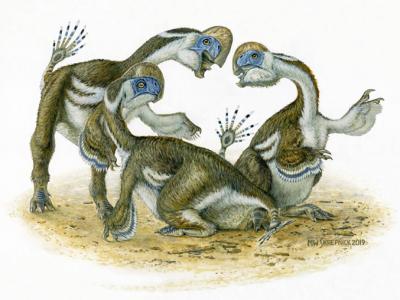 蒙古戈壁沙漠中发现6800多万年前无牙两指鹦鹉形状恐龙Oksoko avarsan(Credit: Mic...