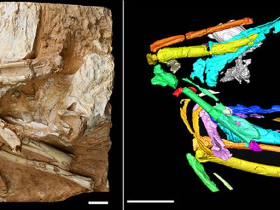 Linxiavis inaquosus化石(左)与基于CT扫描数据的Linxiavis inaquosus彩色图像(右...