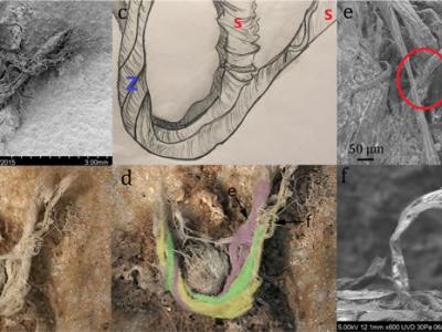 一块哺乳动物头骨化石,牙齿窝里的沉积物,原来是史前蜜蜂筑的巢穴。图片来源:拉萨...