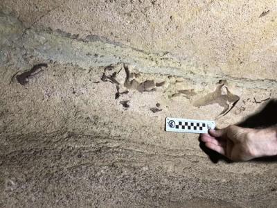 资料图:中国西南部贵州省茅台乡一家酒厂的施工现场发现的侏罗纪早期恐龙脚印化石。...