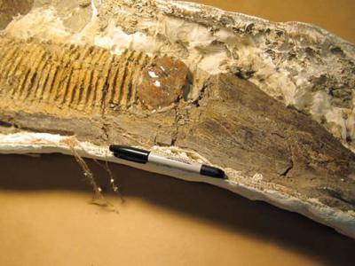 加拿大发现的7500万年前鸭嘴龙颚骨化石顶