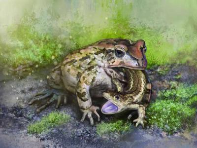 格尼蛙吞食诺敏螈生态复原图(绘图/张宗达 Cheung Chungtat)...