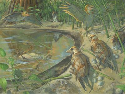 施氏慈母鸟复原图(Alida Bailleul供图)施氏慈母鸟正型标本照...
