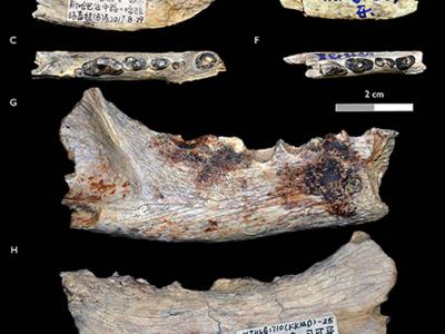 一块哺乳动物头骨化石,牙齿窝里的沉积物,原来是史前蜜蜂筑的巢穴。图片来源:拉萨...