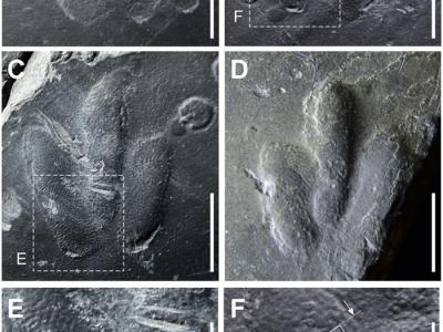 韩国最袖珍恐龙足迹化石上留有皮肤印痕
