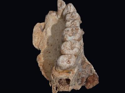 一块哺乳动物头骨化石,牙齿窝里的沉积物,原来是史前蜜蜂筑的巢穴。图片来源:拉萨...