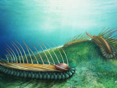 长形黎镰虫生活场景复原图澄江生物群中的长形黎镰虫...
