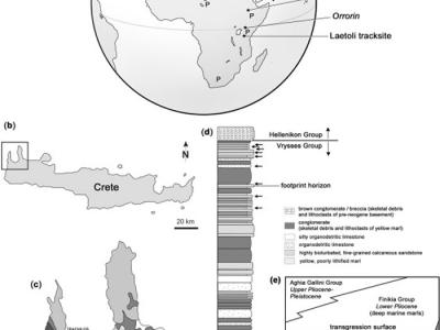 希腊克里特岛发现570万年前的原始人类脚印化石,表...
