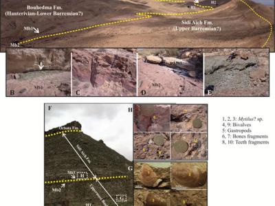 图中显示突尼斯下白垩统Bouhedma组野外露头剖面及化...