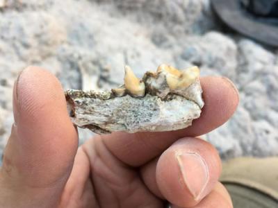 一块哺乳动物头骨化石,牙齿窝里的沉积物,原来是史前蜜蜂筑的巢穴。图片来源:拉萨...