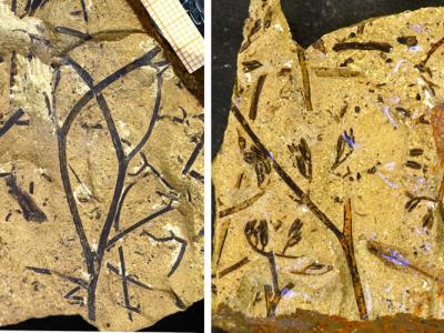 新疆中泥盆世窦氏厥的营养部分和繁殖部分标本,左图...