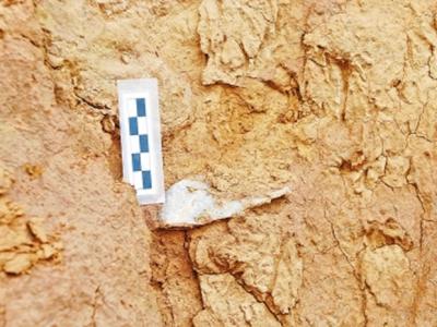 一块哺乳动物头骨化石,牙齿窝里的沉积物,原来是史前蜜蜂筑的巢穴。图片来源:拉萨...