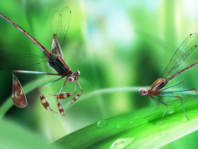 求偶行为复原图黄氏憶人扇蟌(中国化石网报道)据中国科学院南京地质古生物研究所:...
