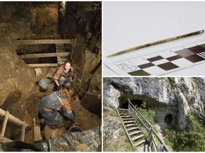 考古人员在丹尼索瓦洞内(左),发现骨针(右上)。 骨针可能改写人类起源史。...