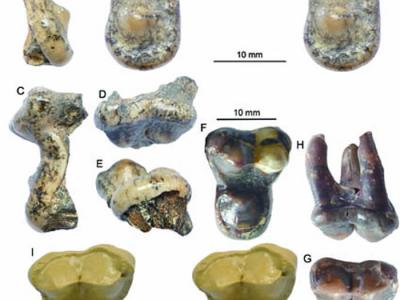 一块哺乳动物头骨化石,牙齿窝里的沉积物,原来是史前蜜蜂筑的巢穴。图片来源:拉萨...