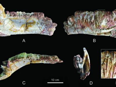 天镇大同龙(Datonglong tianzhenensis)右齿骨外侧视(A)、内侧视(B)、背视(...