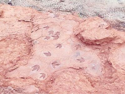 浙江自然博物馆研究团队在化石爱好者帮助下在鱼化石层位发现恐龙足迹化石 (中...