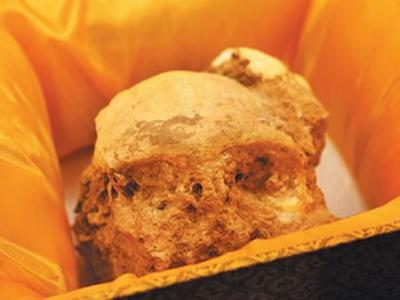 一块哺乳动物头骨化石,牙齿窝里的沉积物,原来是史前蜜蜂筑的巢穴。图片来源:拉萨...