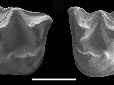 一块哺乳动物头骨化石,牙齿窝里的沉积物,原来是史前蜜蜂筑的巢穴。图片来源:拉萨...