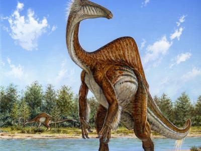 新发现的奇异恐手龙(Deinocheirus mirificus)复原图(中国化石网配图) (中...