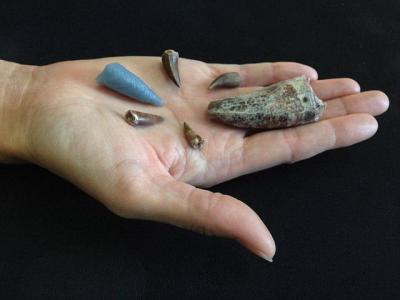 一块哺乳动物头骨化石,牙齿窝里的沉积物,原来是史前蜜蜂筑的巢穴。图片来源:拉萨...