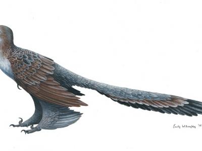 辽宁发现新的有羽毛恐龙“杨氏长羽盗龙”的复原图(中国化石网配图) 辽宁...