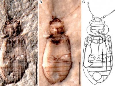 中生代伪郭公虫化石 最古老伪吉丁化石 原始侏罗纪隐翅虫 化石突眼隐翅虫...