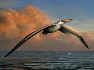 Pelagornis sandersi的复原图 地球历史上最大飞鸟Pelagornis sandersi,翼展7...