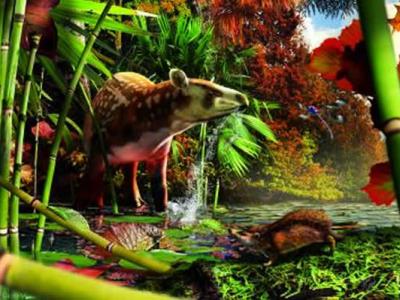 这是一个始新世早期(5200万年前)栖息于不列颠哥伦比亚省北部一个湖泊周围的雨林...