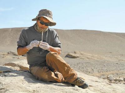汪筱林在进行野外考察 第一枚三维立体保存的翼龙蛋 (中国化石网报道)据乌鲁...
