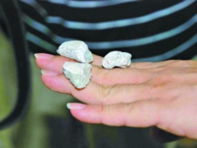郁南磨刀山发掘现场 文物专家在研究发掘出来的手镐等各类石器 (中国化石网报...