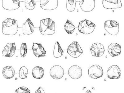 汉中盆地的石制品。1,3-4,6,砍砸器;2,8,手镐;5,13,刮削器;7,手斧;9,...