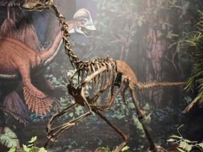 美国匹兹堡卡耐基自然历史博物馆恐龙时代系列展览中展出的窃蛋龙类新物种偷蛋龙(...