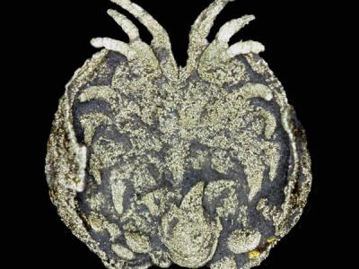 新发现的介形亚纲动物化石Luprisca incuba,图中显示了它的四肢和蛋。 X射线和...