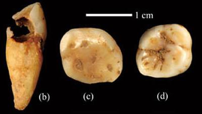 之前出土的古人类牙齿化石 (中国化石网)据中新网:记者9日晚从湖南道县县委宣...