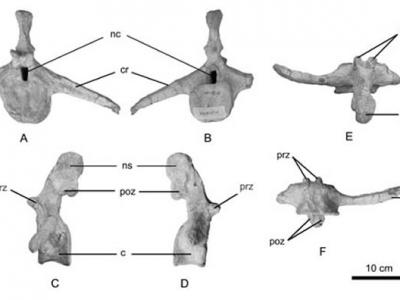 金城洮河龙前中部尾椎(杨精涛供图) 金城洮河龙左侧髂骨(杨精涛供图) 金...