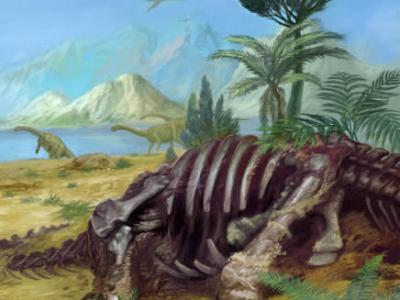 白蚁啃食恐龙尸体复原图 东方饕餮迹特写 发现虫迹的恐龙化石 恐龙骨骼上...