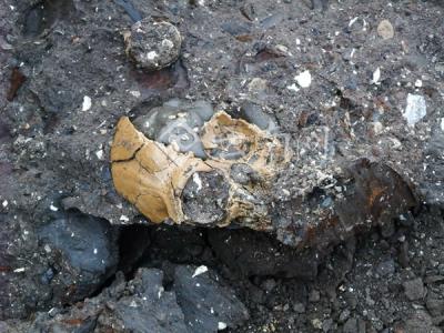 一块哺乳动物头骨化石,牙齿窝里的沉积物,原来是史前蜜蜂筑的巢穴。图片来源:拉萨...