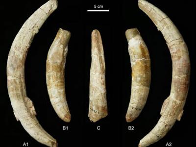 临夏盆地下中新统的兰州巨獠犀(Aprotodon lanzhouensis)右下门齿(邓涛供图) 中...