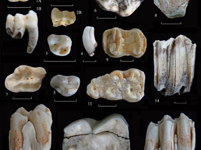 福岩洞发现的人类牙齿化石(裴树文供图) 福岩洞发现的哺乳动物化石(裴树文供...