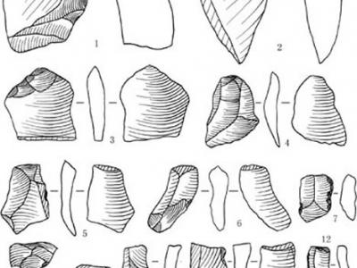 太子陵旧石器地点发现的部分石制品。1、2、7 刮削器,3、10—12 断片,4—6、13完...