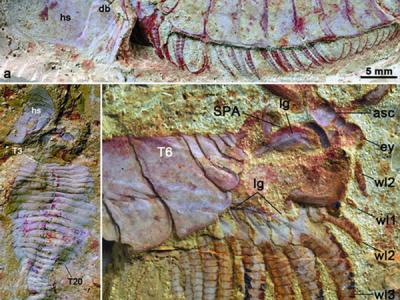 昆明东郊寒武系沧浪铺阶小石坝动物群中的抚仙湖虫类。因“头甲掀开”的独特保存模...