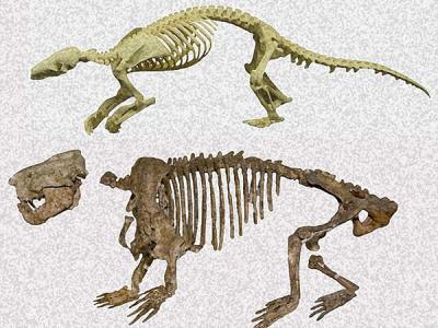 中国穿山甲的化石,这个獾大小的动物长有锋利的挖爪(底部),它为哺乳动物时代的...