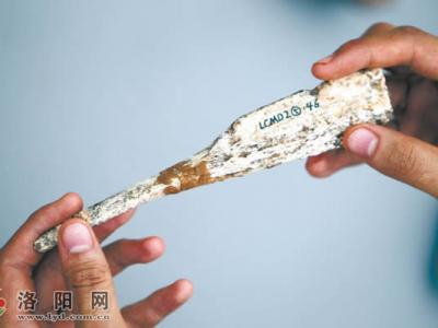 栾川龙泉山遗址发掘出的骨锥 从左至右:鹿腿骨、牛腿骨、犀牛腿骨化石 栾川龙...