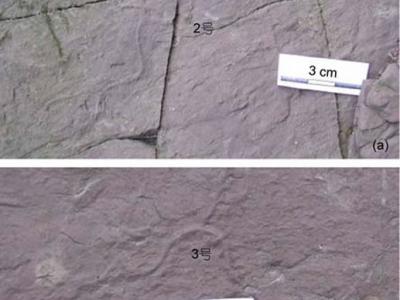 四川峨眉下三叠统鱼类游泳遗迹化石 众所周知,游泳鱼类生活在一定深度的水体中,由...