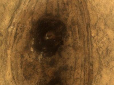 一块哺乳动物头骨化石,牙齿窝里的沉积物,原来是史前蜜蜂筑的巢穴。图片来源:拉萨...