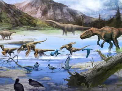 距今约1.2亿年前的魔鬼城地区的古生物群复原图 中外古生物学者4月22日宣称,他们...