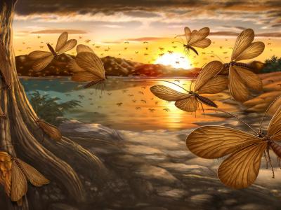 白垩纪中期婚飞的石蛾(化石网cnfossil.com)据首都师范大学生命科学学院(王佳佳)...