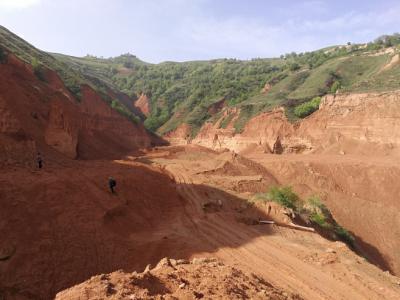 图1. 甘肃临夏盆地晚渐新世椒子沟组沉积地层图2. 产自临夏盆地晚渐新世椒子沟组砂岩...